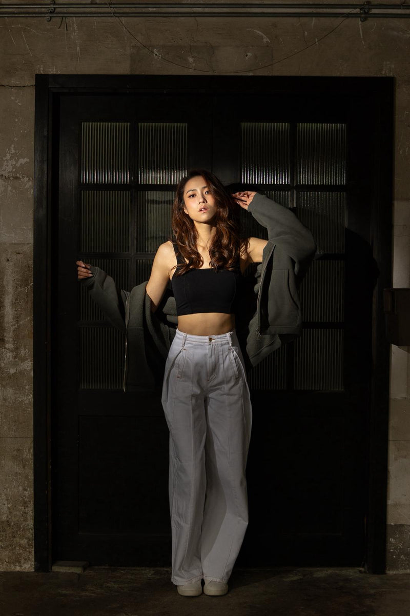 Tiffany wearing a size S. Oversized design looks effortless on anyone